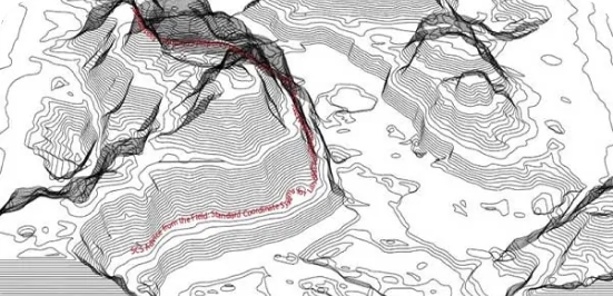 Topo contours generated from the point cloud elevation information that is verified by ground control points (GCPs) set with GNSS equipment.