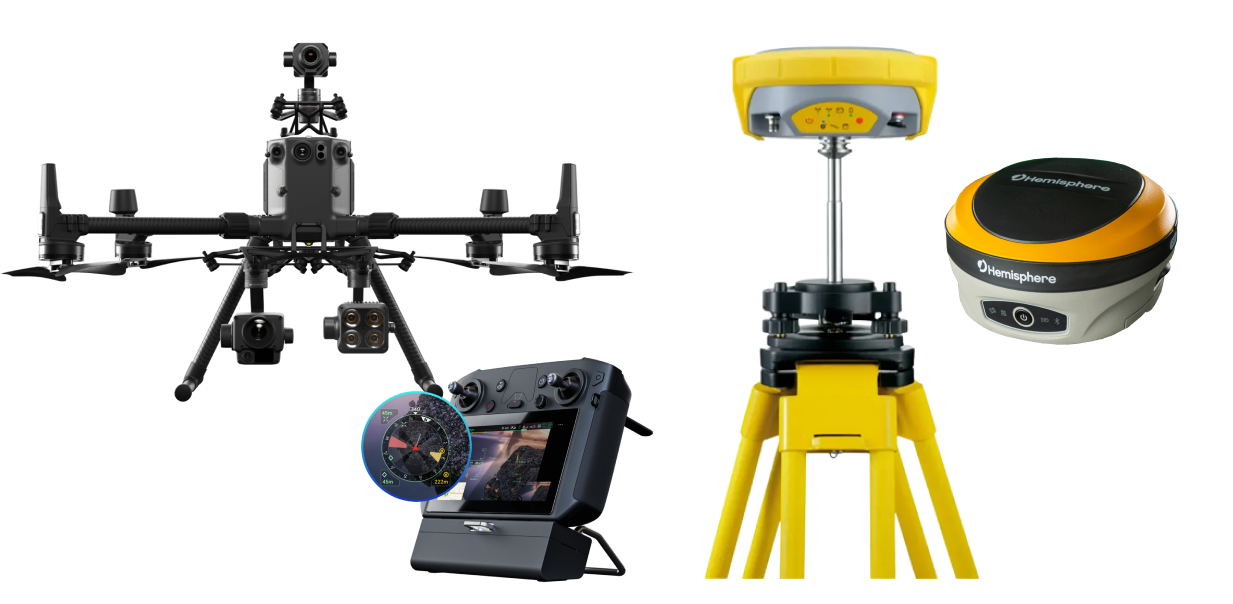 We use the DJI Matrice 300 RTK drone with the DRTK-2 base station and Zenmuse L1 sensor for precise 3D data and high-resolution images, ensuring top-tier accuracy and efficiency in land surveying.